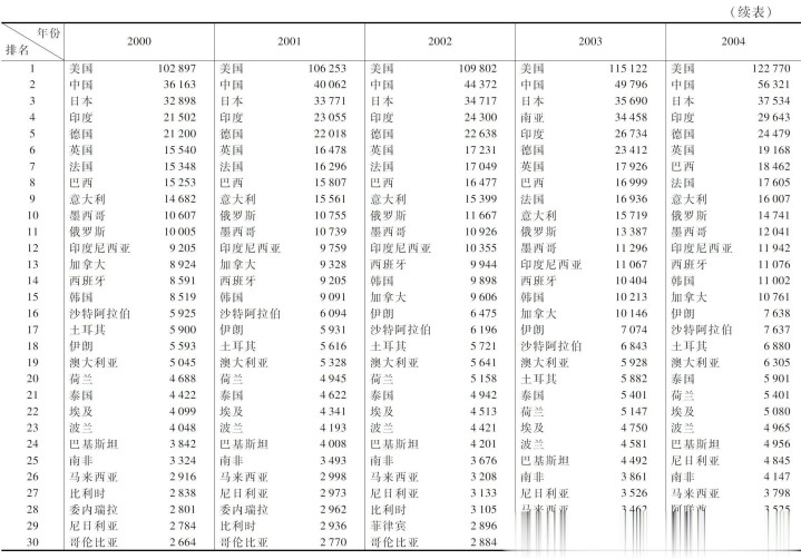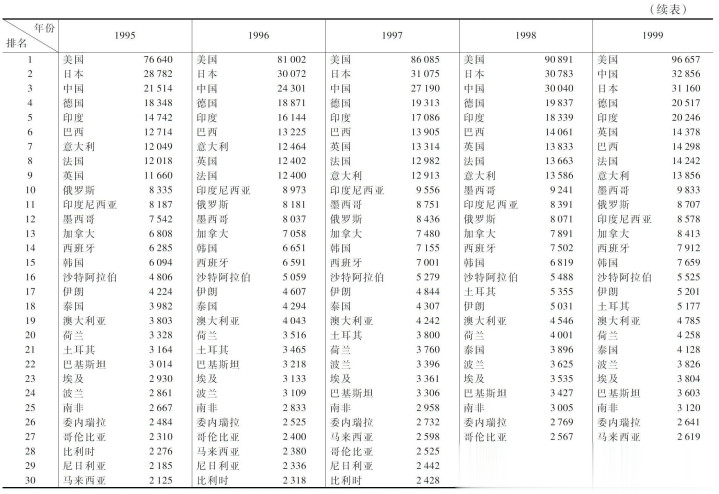按照购买力平价法计算的各国GDP排名